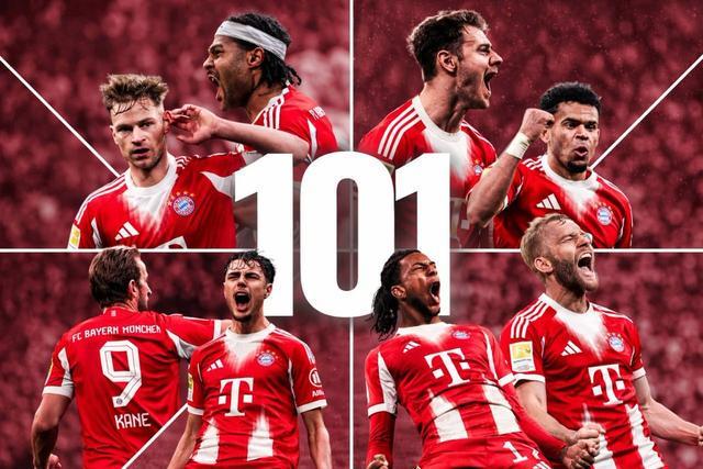 101球,拜仁追平自己保持的单赛季德甲进球纪录